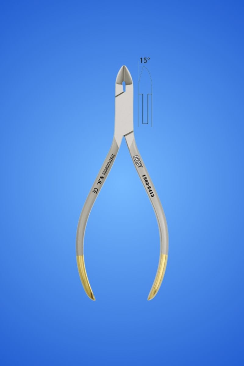 The Pin & Ligature Cutter 15° Angle is a precision orthodontic instrument designed for cutting soft ligature wires and pins with accuracy and control. Its 15-degree angled design provides easy access to hard-to-reach areas, ensuring comfort and efficiency during clinical procedures.
